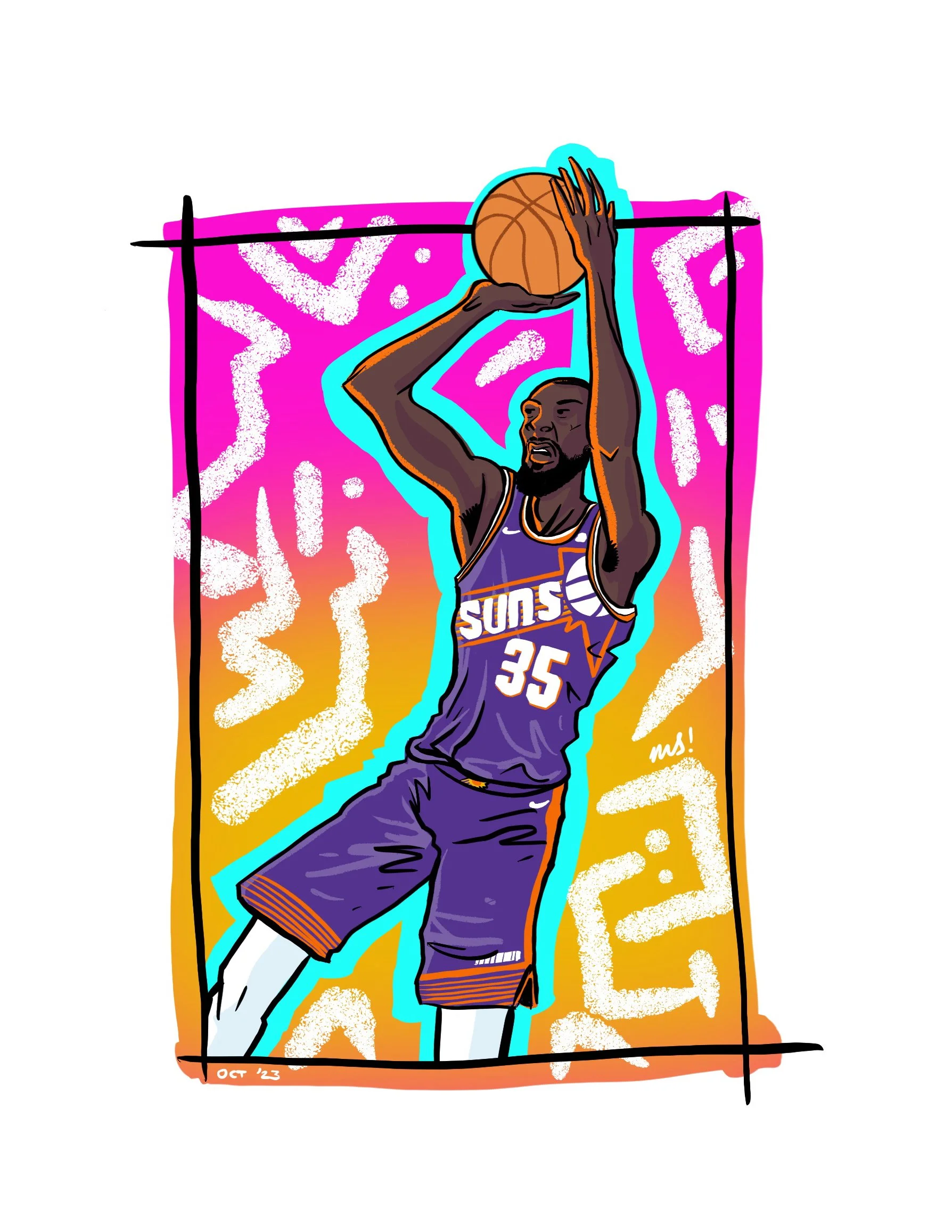 If I do find myself with time to spare I’ll spend it obsessing over art, comic books, music or basketball. Sometimes those interests will even overlap into a drawing like this one here —->